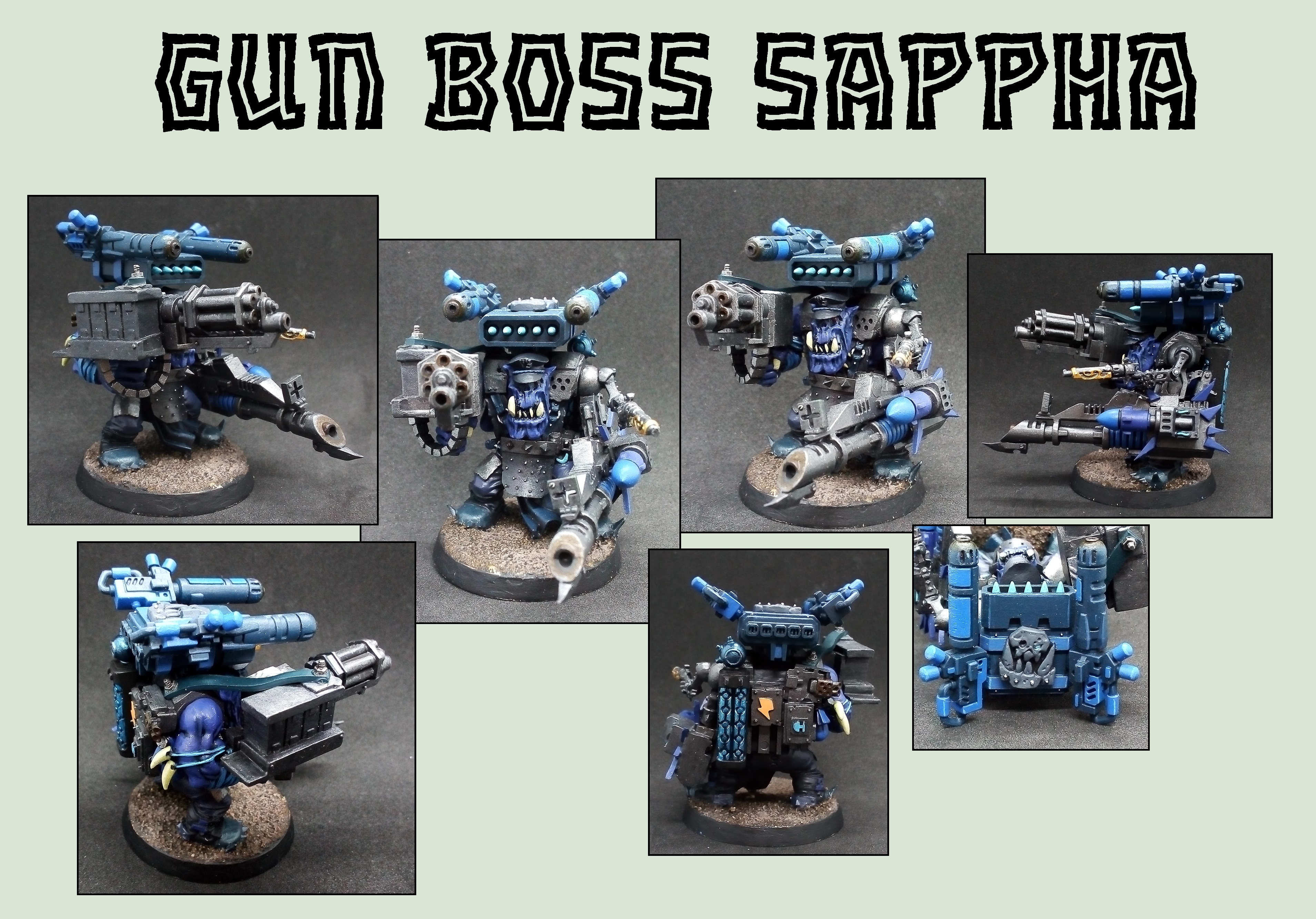 Para este proyecto, quería apelotonar todas las armas que pudiera en un Kaudillo de Black Reach. Originalmente, tenía un arma antipersonal y una anticarro por brazo, pero tuve que reducirlo a lo que veis porque no se me ocurría cómo incluirlo todo y que quedara bien.